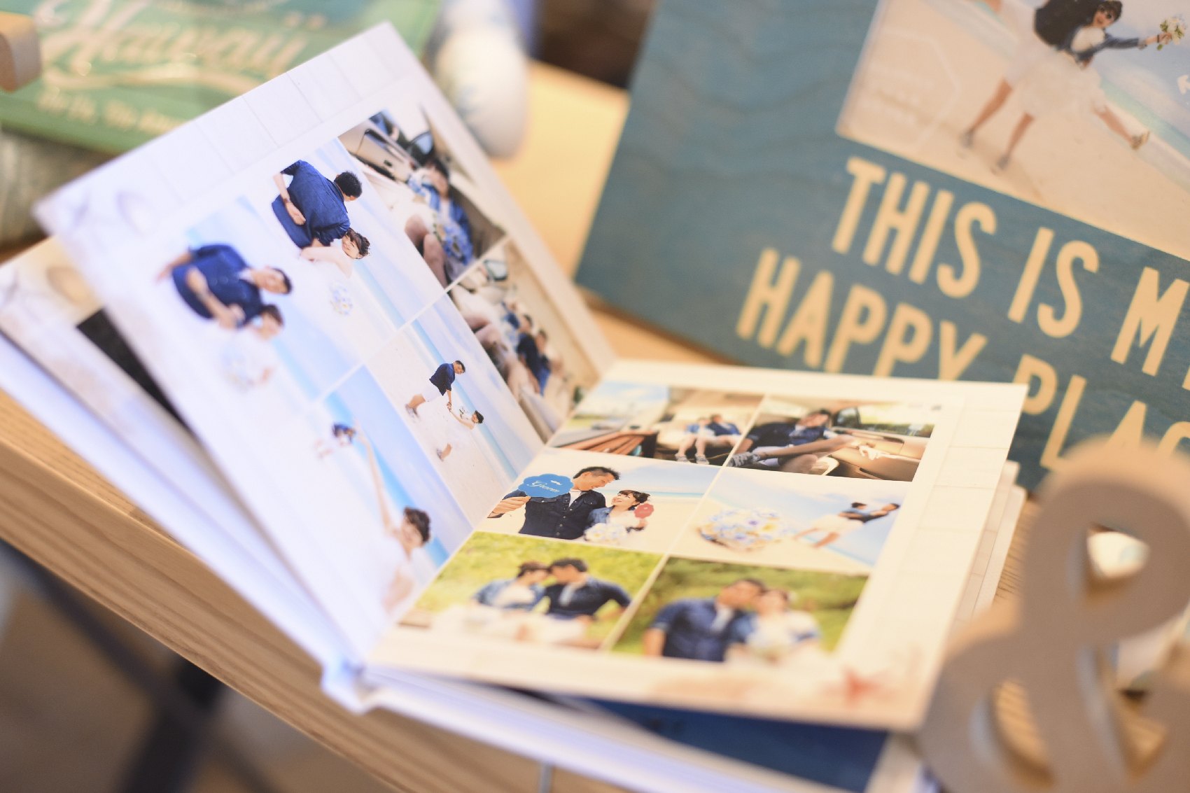 二人は結婚式の前にハワイへハネムーンへ♪現地で前撮りも行いました。ビーチ沿いでカジュアルでオシャレなお写真を撮られ当日にたくさん活用されました!二人の好みをウェルカムスペースに反映させて、来られるゲストもこれから始まる時間をワクワク感じていただけました。