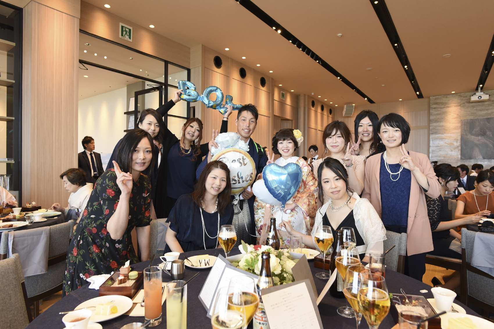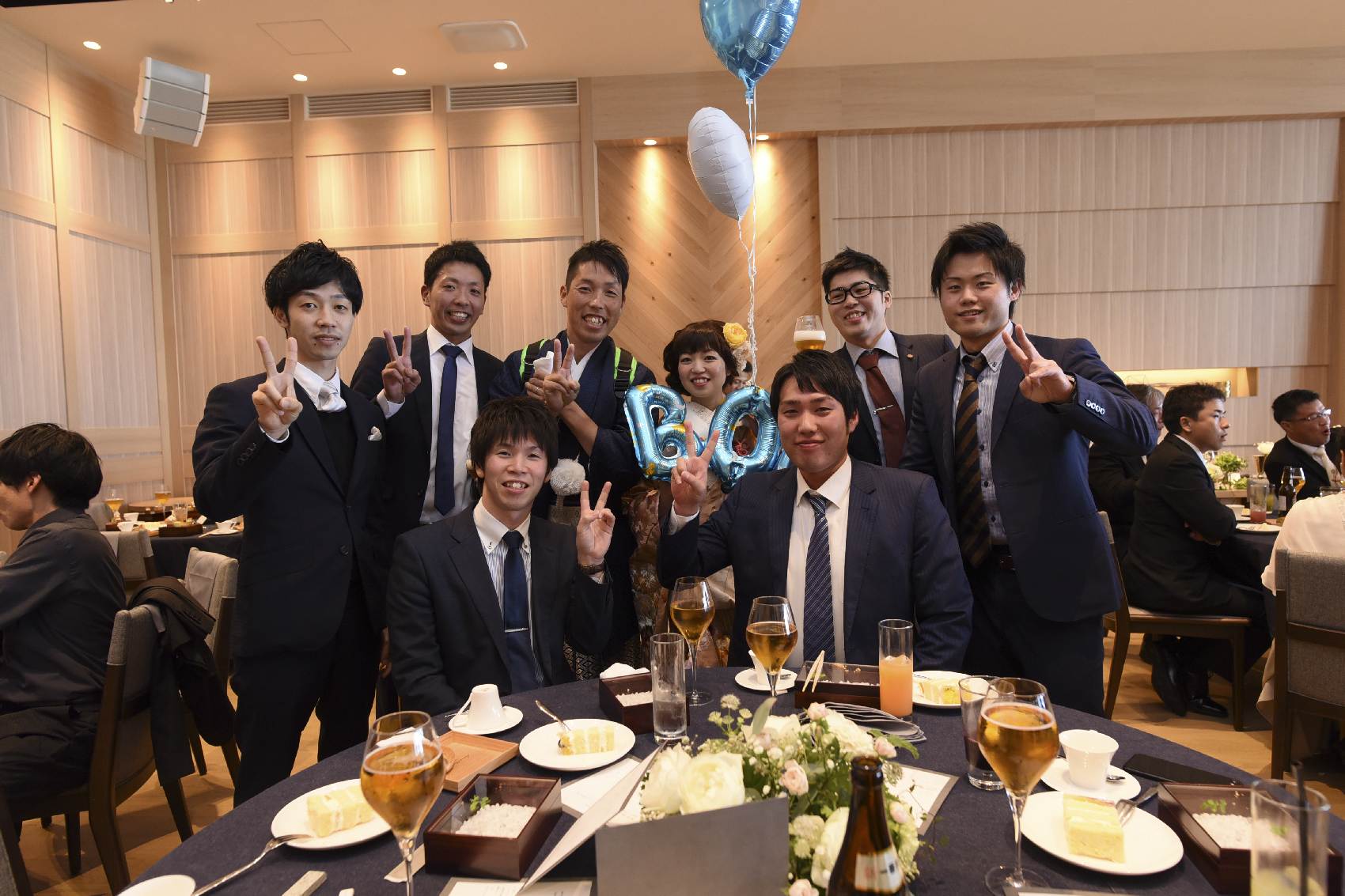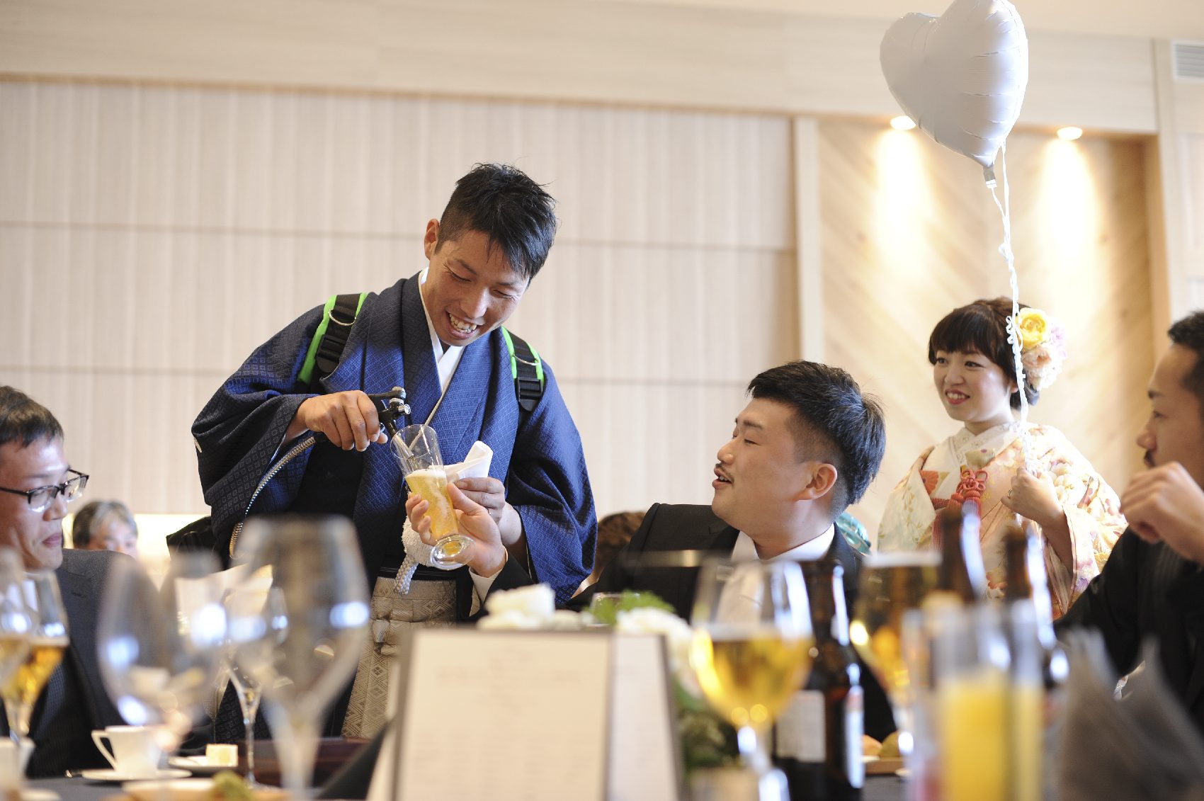 お色直し後はもっとENJOYしていただく為、ビールサーバーを背負って再登場♪ゲストと会話を楽しみつつ、各テーブルをラウンドされました。昔懐かしい同級生も多く集まっていただき、アットホームなお時間を過ごされました。