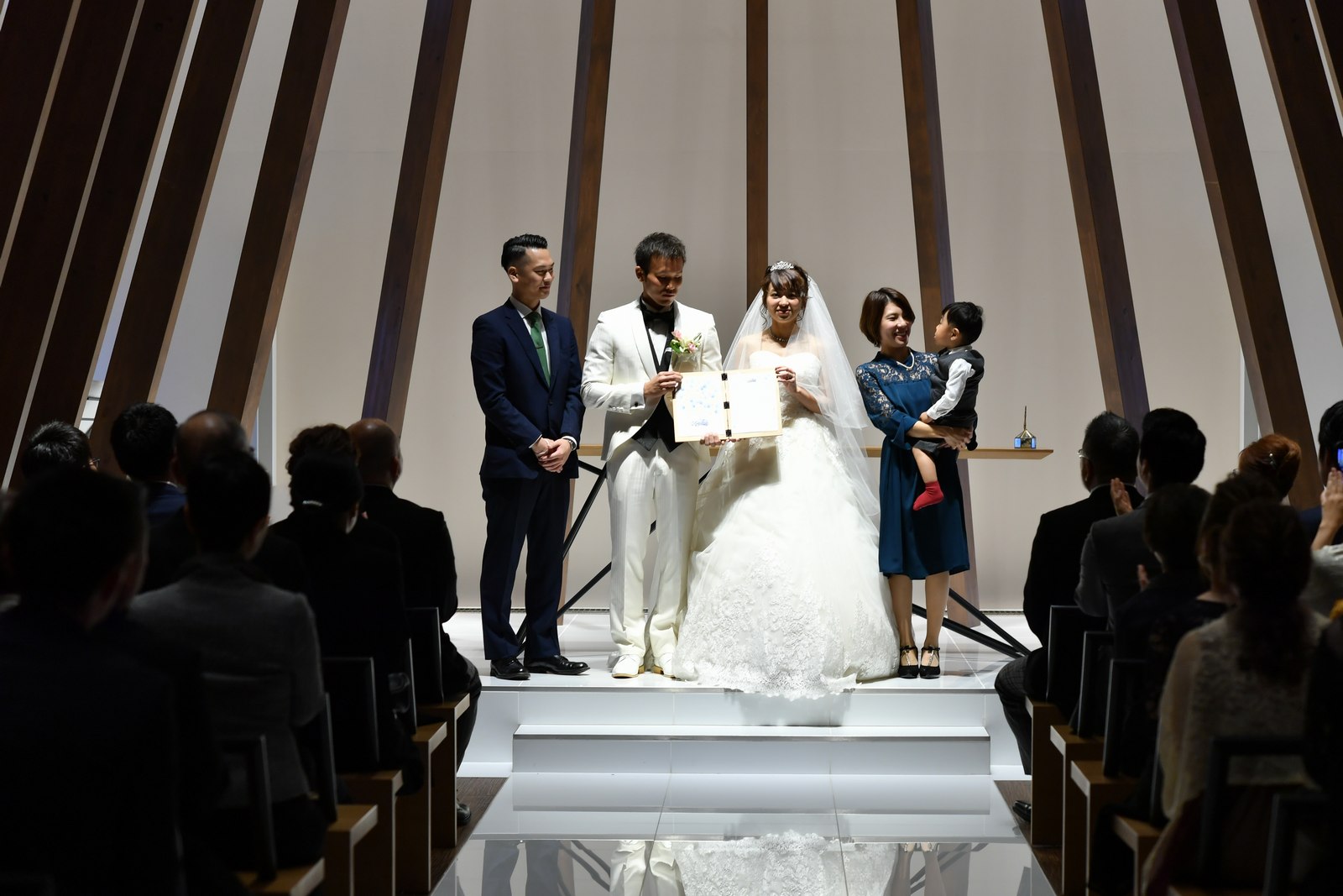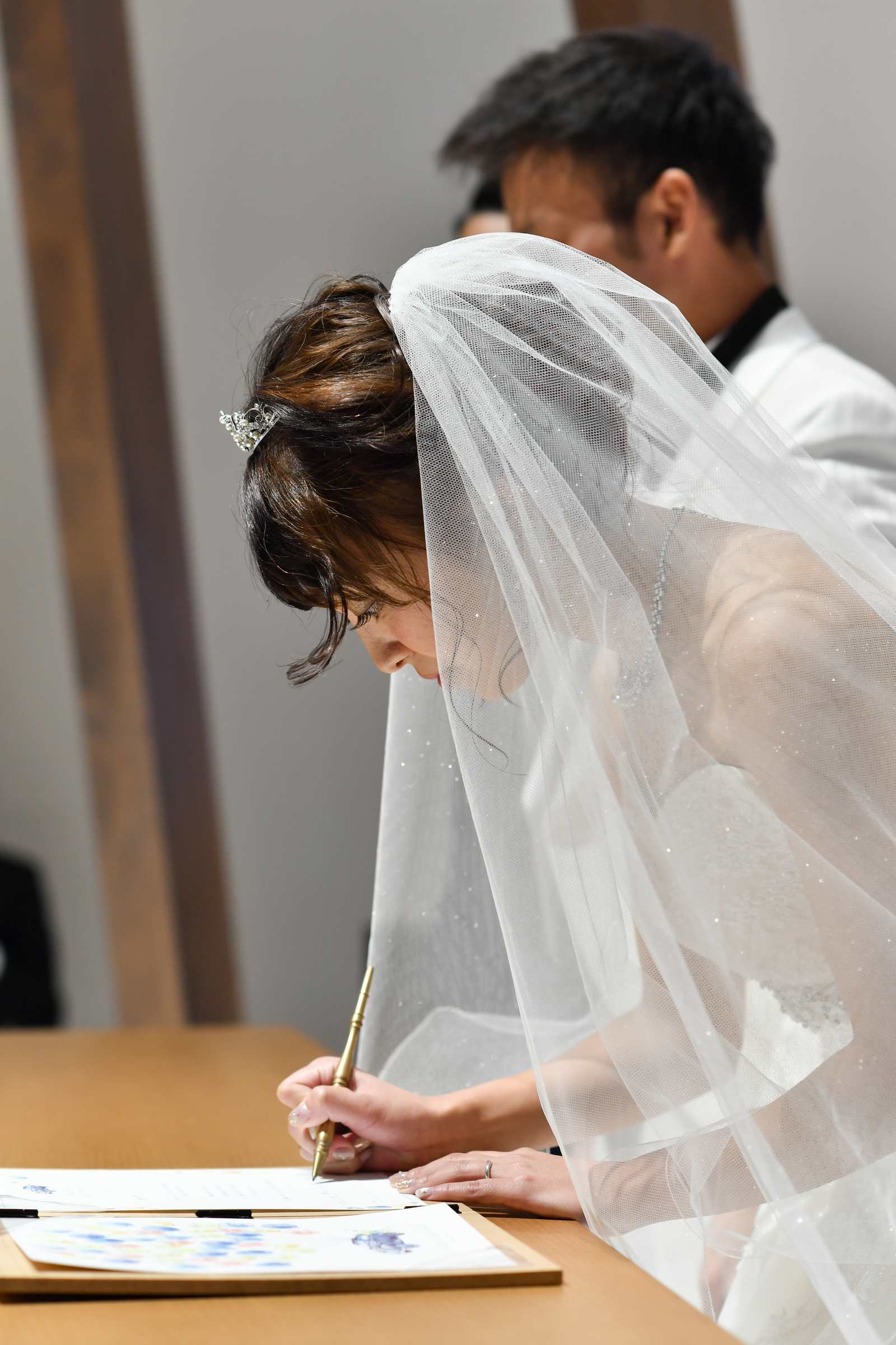 先ほど誓った結婚証明書にサインをし、そしてそれぞれの親友に立会人としてサインしていただきました。
