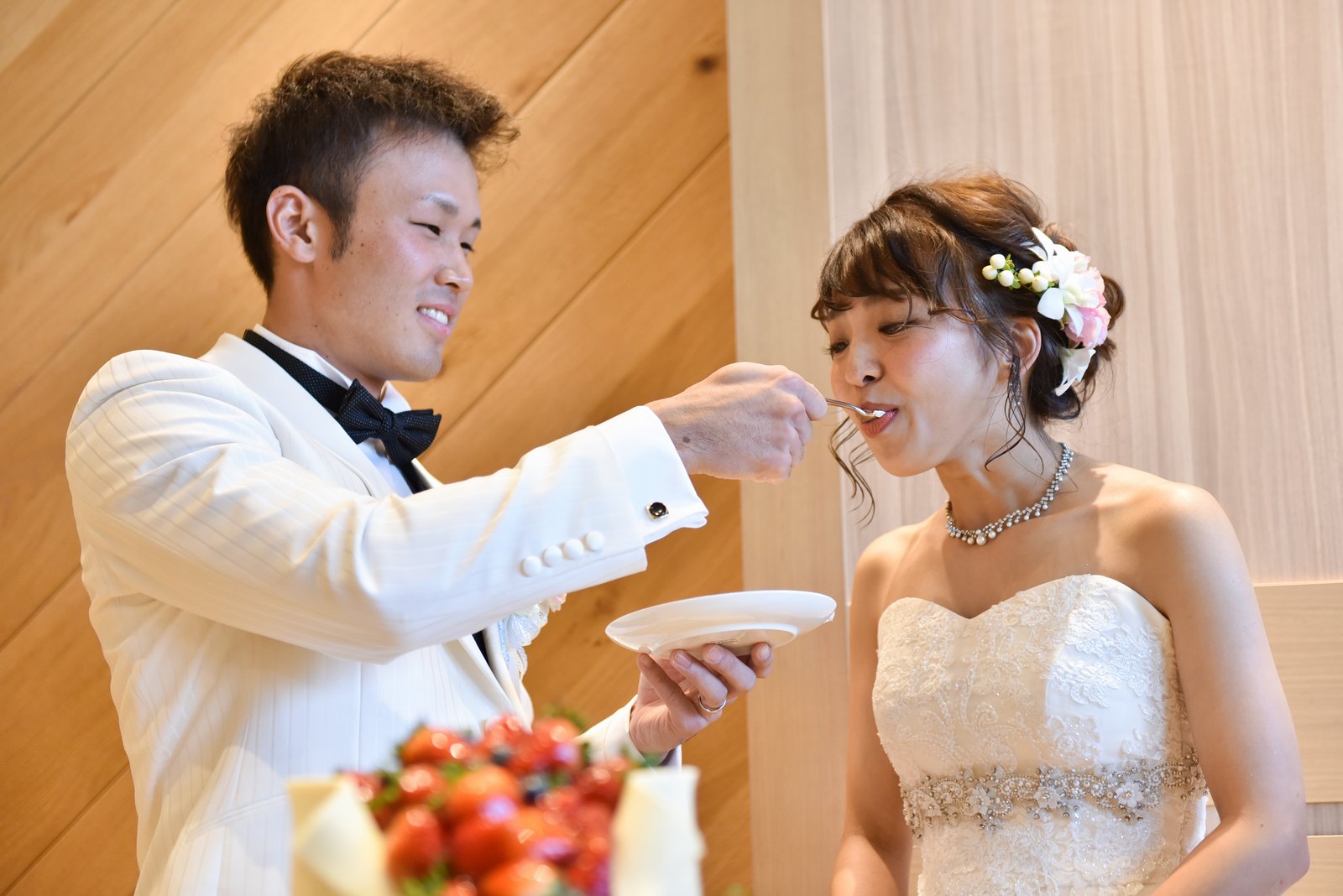 新郎様から新婦様へ、新婦様から新郎様へファーストバイト。
