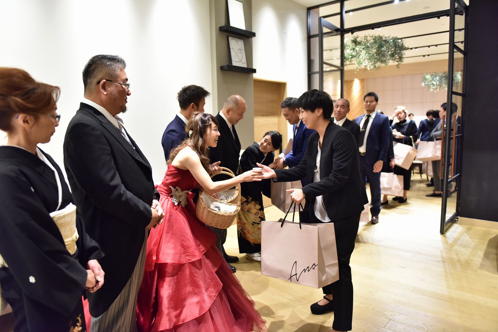 ゲストひとりひとりにありがとうを伝えながら心温まるお二人と皆さまにとっての特別な一日、そして、お二人らしいキラキラの輝く笑顔でお見送りとなりました。